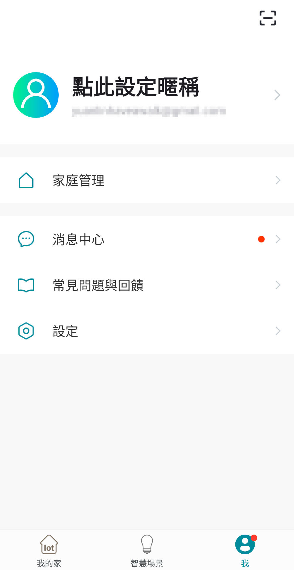 進入 ihome智慧+ 應用程式介面,點擊右下方"我",進入我的設定介面。