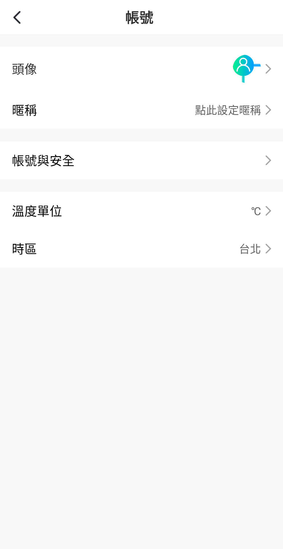 點擊"點此設定暱稱",進入"帳號"設定介面,在此可以編輯個人"頭像"顯示及"暱稱"。